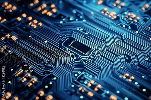 Abstract Circuit Board Blue Hues, Close-Up Composition, Technology Concept, motherboard, digital motherboard, technology