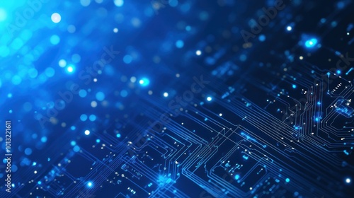 Abstract Circuit Board with Blue Glowing Lights - A Futuristic Digital Network Visualization.