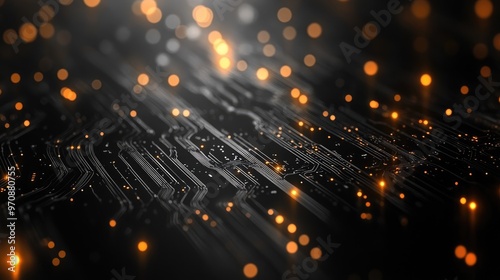 Abstract circuit board with glowing lights, creating a futuristic and technological background.