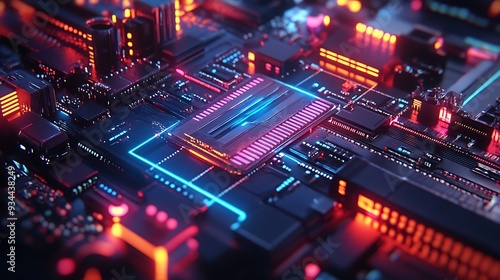Abstract Circuit Board with Neon Lights Technology Background