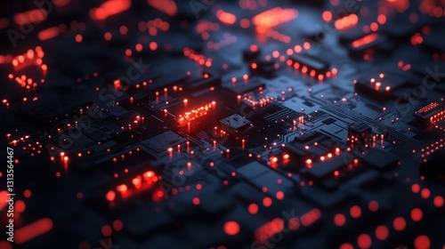 Abstract Circuit Board with Red Lights