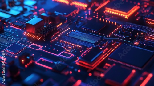 Abstract Circuitry Illuminated in Vivid Red and Blue