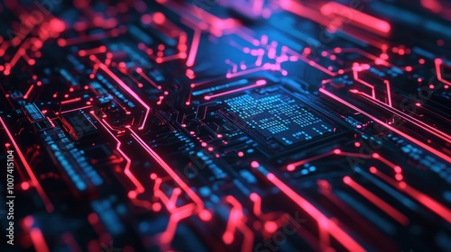 Abstract Circuitry with Glowing Red and Blue Lines