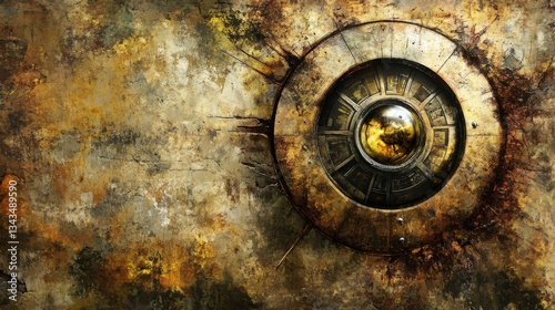 Abstract Circular Design with Textured Metal and Rusty Background