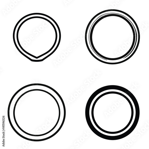 Abstract Circular Shapes Set in Black and White with Transparent Background