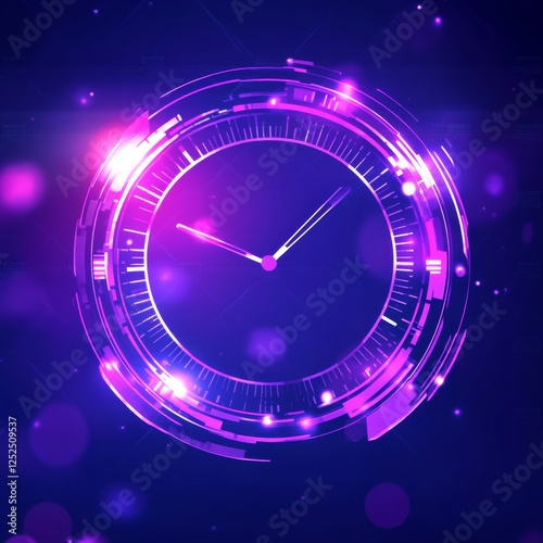 Abstract Circular Time Display with Tech Interface and Glowing Purple Hues for Modern Design.