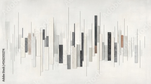 Abstract cityscape; muted tones, varying heights of rectangular shapes, suggesting buildings