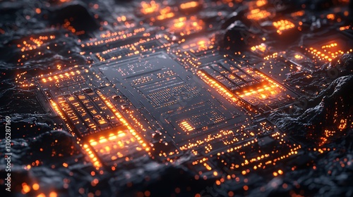 Abstract Close-Up of a Futuristic Circuit Board with Glowing Lights