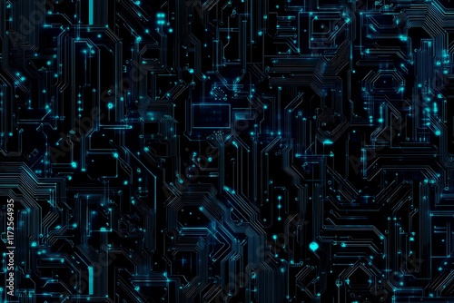Abstract close-up of a glowing blue digital circuit board, showcasing intricate connections and technological design on a black background.