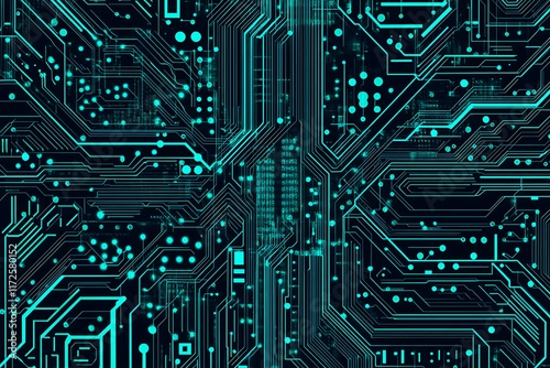 Abstract close-up of a glowing blue digital circuit board, showcasing intricate connections and technological design on a black background.