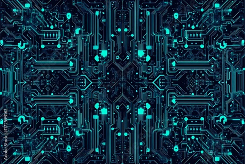 Abstract close-up of a glowing blue digital circuit board, showcasing intricate connections and technological design on a black background.