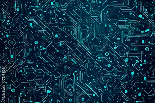 Abstract close-up of a glowing blue digital circuit board, showcasing intricate connections and technological design on a black background.