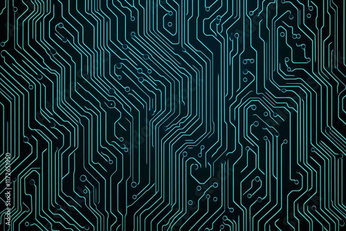 Abstract close-up of a glowing blue digital circuit board, showcasing intricate connections and technological design on a black background.
