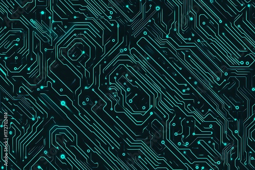 Abstract close-up of a glowing blue digital circuit board, showcasing intricate connections and technological design on a black background.