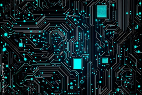 Abstract close-up of a glowing blue digital circuit board, showcasing intricate connections and technological design on a black background.