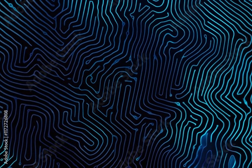 Abstract close-up of a glowing blue digital circuit board, showcasing intricate connections and technological design on a black background.