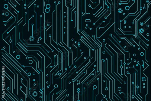 Abstract close-up of a glowing blue digital circuit board, showcasing intricate connections and technological design on a black background.