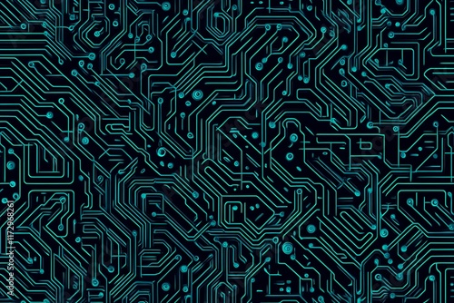 Abstract close-up of a glowing blue digital circuit board, showcasing intricate connections and technological design on a black background.