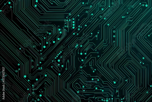 Abstract close-up of a glowing blue digital circuit board, showcasing intricate connections and technological design on a black background.
