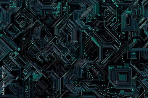 Abstract close-up of a glowing blue digital circuit board, showcasing intricate connections and technological design on a black background.