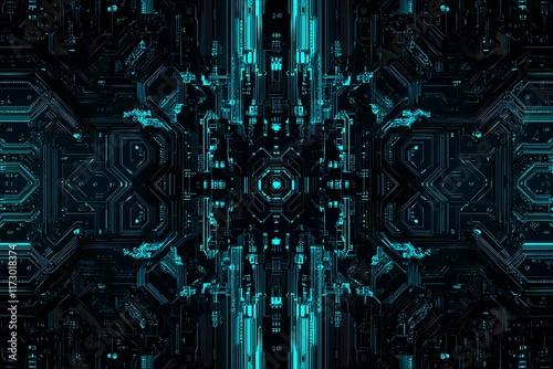 Abstract close-up of a glowing blue digital circuit board, showcasing intricate connections and technological design on a black background.