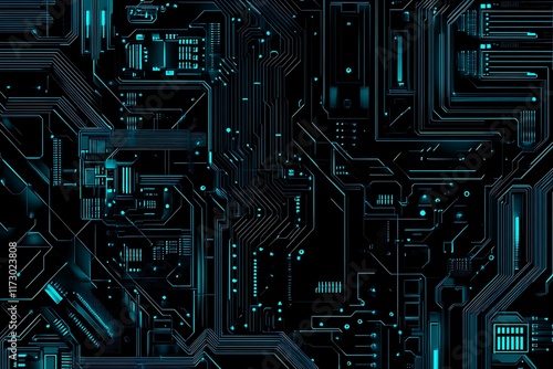 Abstract close-up of a glowing blue digital circuit board, showcasing intricate connections and technological design on a black background.