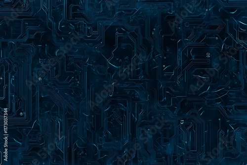 Abstract close-up of a glowing blue digital circuit board, showcasing intricate connections and technological design on a black background.