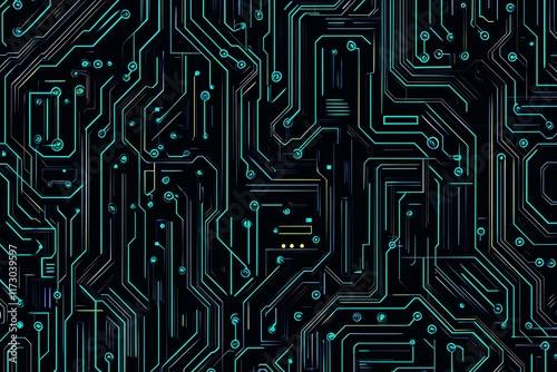 Abstract close-up of a glowing blue digital circuit board, showcasing intricate connections and technological design on a black background.