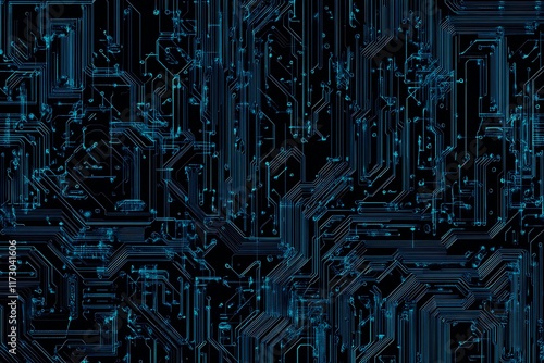 Abstract close-up of a glowing blue digital circuit board, showcasing intricate connections and technological design on a black background.