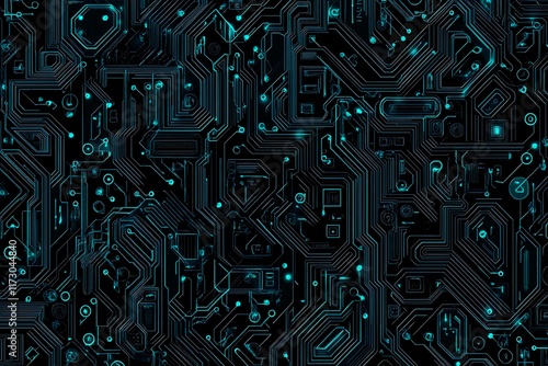 Abstract close-up of a glowing blue digital circuit board, showcasing intricate connections and technological design on a black background.