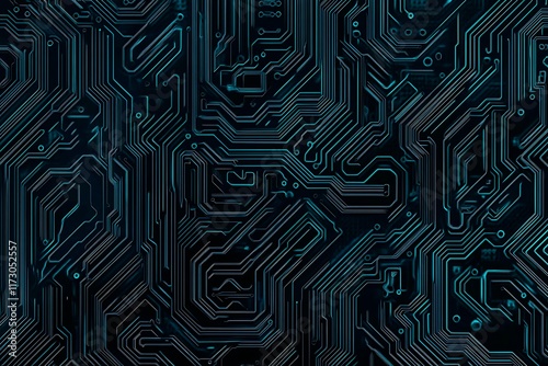 Abstract close-up of a glowing blue digital circuit board, showcasing intricate connections and technological design on a black background.