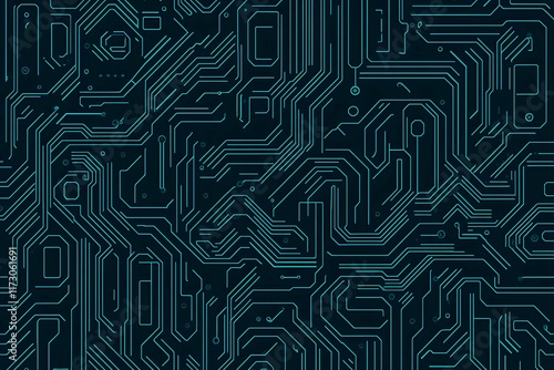 Abstract close-up of a glowing blue digital circuit board, showcasing intricate connections and technological design on a black background.