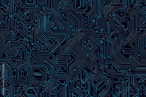 Abstract close-up of a glowing blue digital circuit board, showcasing intricate connections and technological design on a black background.