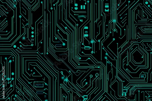Abstract close-up of a glowing blue digital circuit board, showcasing intricate connections and technological design on a black background.