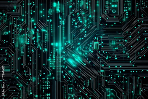 Abstract close-up of a glowing blue digital circuit board, showcasing intricate connections and technological design on a black background.