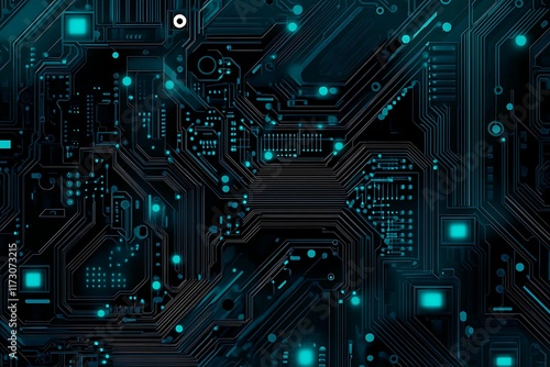 Abstract close-up of a glowing blue digital circuit board, showcasing intricate connections and technological design on a black background.
