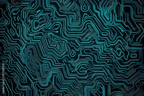 Abstract close-up of a glowing blue digital circuit board, showcasing intricate connections and technological design on a black background.