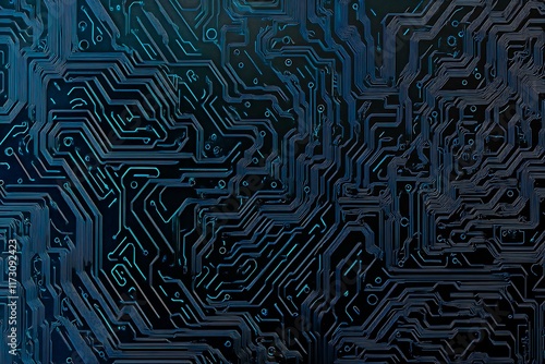Abstract close-up of a glowing blue digital circuit board, showcasing intricate connections and technological design on a black background.