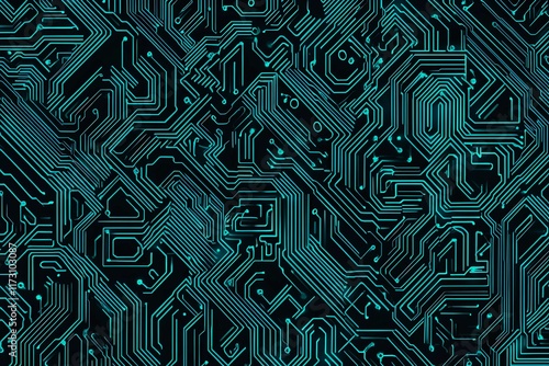 Abstract close-up of a glowing blue digital circuit board, showcasing intricate connections and technological design on a black background.
