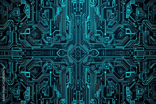 Abstract close-up of a glowing blue digital circuit board, showcasing intricate connections and technological design on a black background.