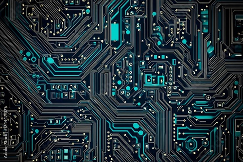 Abstract close-up of a glowing blue digital circuit board, showcasing intricate connections and technological design on a black background.