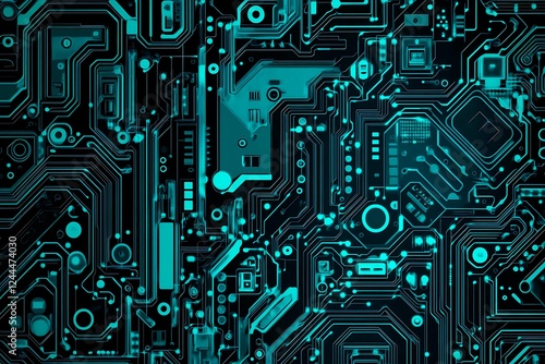 Abstract close-up of a glowing blue digital circuit board, showcasing intricate connections and technological design on a black background.