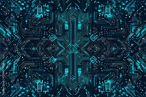 Abstract close-up of a glowing blue digital circuit board, showcasing intricate connections and technological design on a black background.