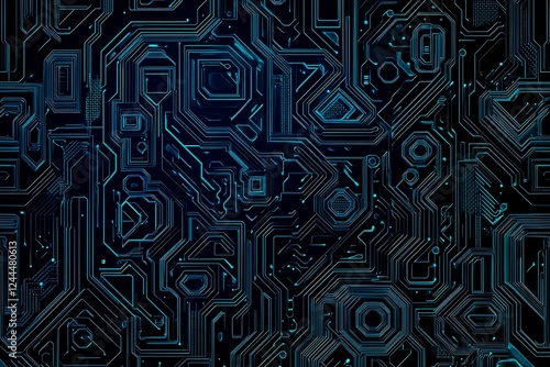 Abstract close-up of a glowing blue digital circuit board, showcasing intricate connections and technological design on a black background.