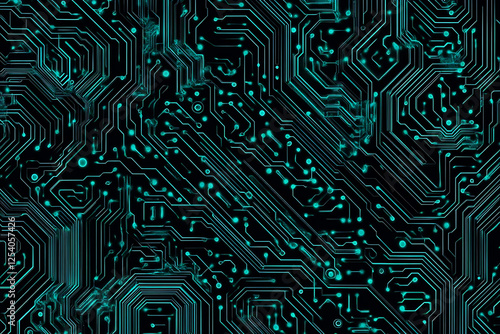 Abstract close-up of a glowing blue digital circuit board, showcasing intricate connections and technological design on a black background.