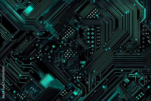 Abstract close-up of a glowing blue digital circuit board, showcasing intricate connections and technological design on a black background.