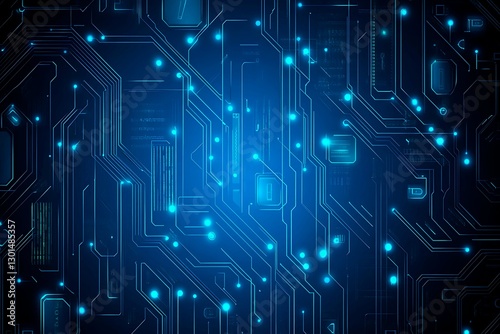 Abstract close-up of a glowing blue digital circuit board, showcasing intricate connections and technological design on a black background.