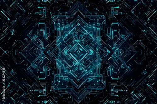Abstract close-up of a glowing blue digital circuit board, showcasing intricate connections and technological design on a black background.