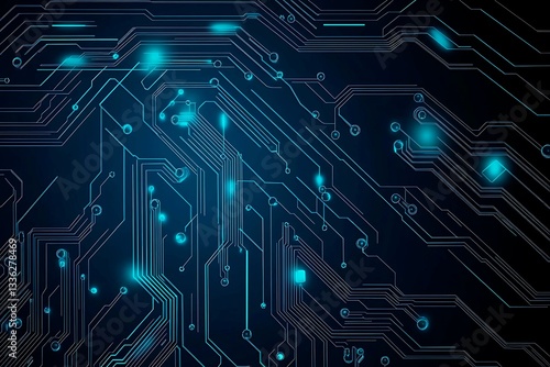 Abstract close-up of a glowing blue digital circuit board, showcasing intricate connections and technological design on a black background.