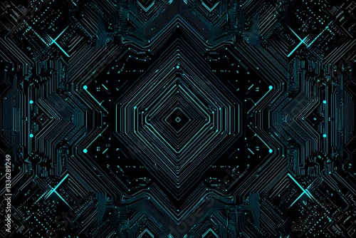 Abstract close-up of a glowing blue digital circuit board, showcasing intricate connections and technological design on a black background.